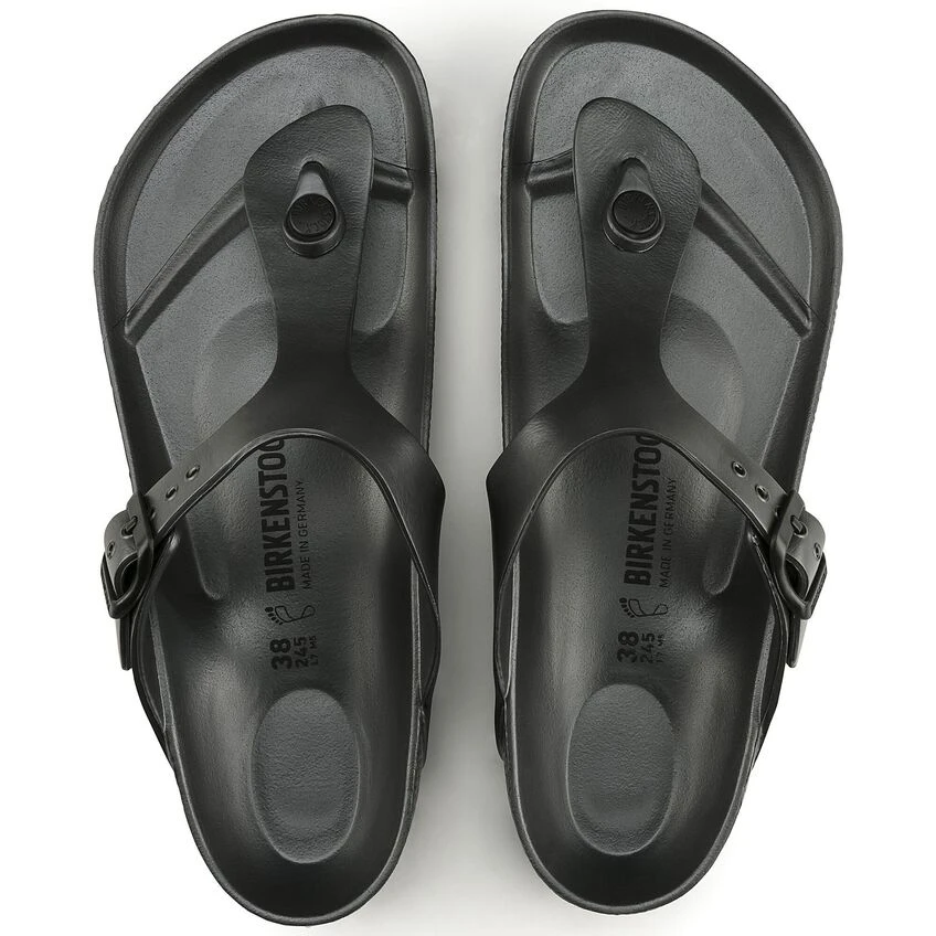 The BIRKENSTOCK Gizeh is our classic thong sandal. Modeled on the cork original, this sandal is made from ultra lightweight and highly flexible EVA. These colorful sandals are shock-absorbent, waterproof, and skin-friendly. Wear them at the beach, in the garden, or in wellness and spa areas. It’s the perfect addition to your classic BIRKENSTOCK sandals.